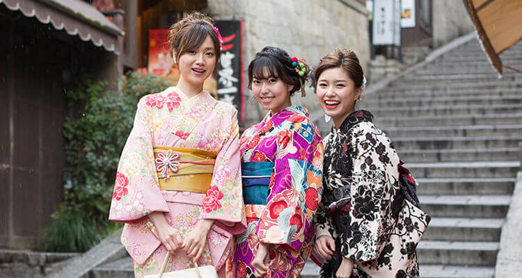 연간 20만 명이 방문하는 원조 기모노 대여점 오카모토. 전 매장이 교토의 인기 관광지(기요미즈데라 절, 기온 거리, 야사카진자 신사, 고다이지 절, 야사카의 탑).기모노 1,000벌 이상 항시 준비! 일본풍 옷차림용 헤어 세팅 500엔부터, 머리 장식은 자유롭게 이용 가능! 연간 20만 명이 방문하는 원조 기모노 대여점 오카모토.