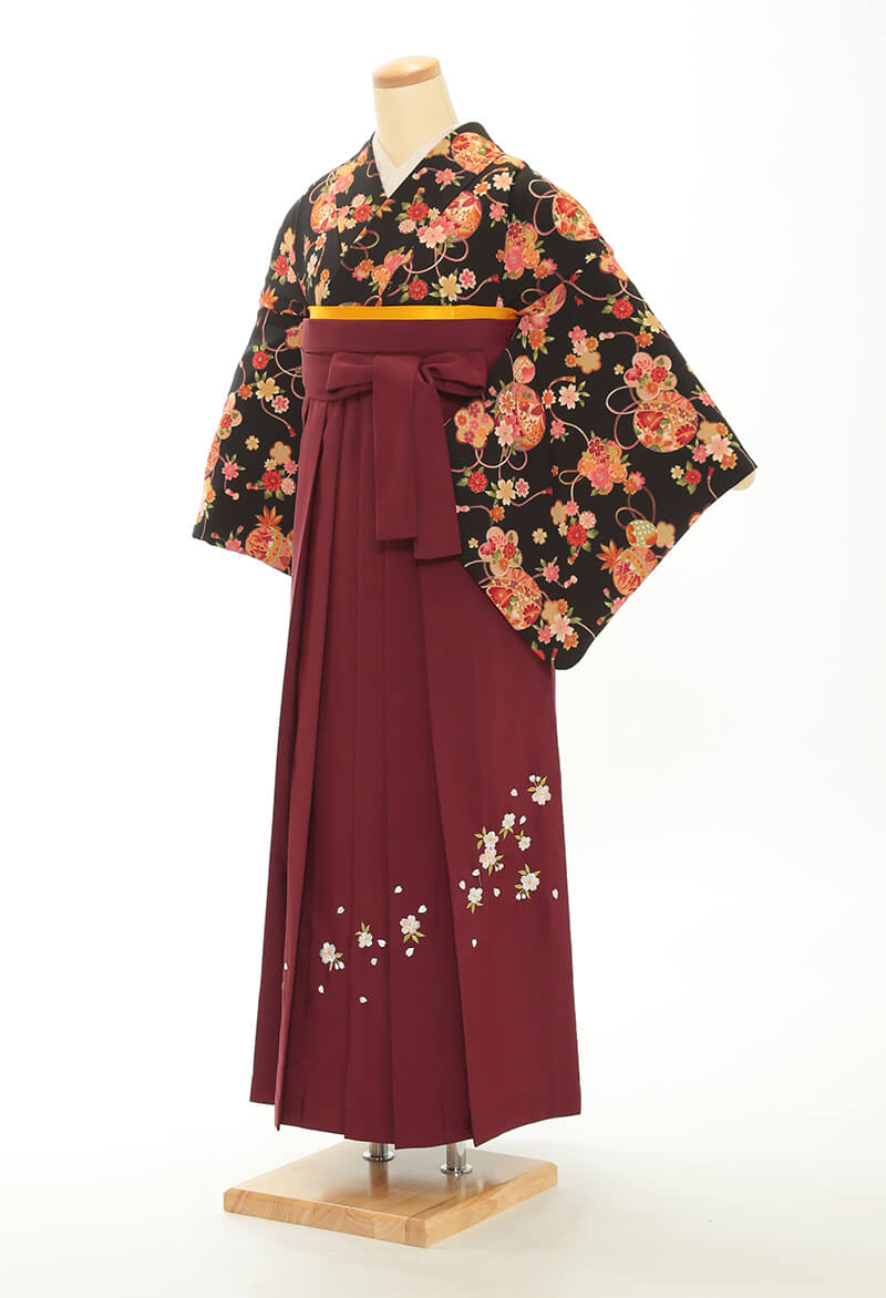 약600벌 중에서 마음에 드는 고몬 기모노를 고르신 뒤, 신장에 맞는 하카마 색상도 선택하실 수 있습니다.