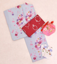기모노에 맞는 가방 및 주머니도 세트로 구성되어 있습니다.