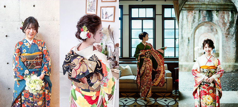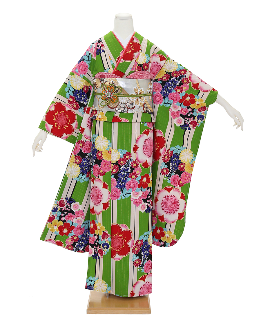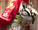 약 20~30벌 중에서 고르실 수 있습니다. 고몬 기모노보다 소매가 길고 허리띠도 호화로워 매우 화려합니다.