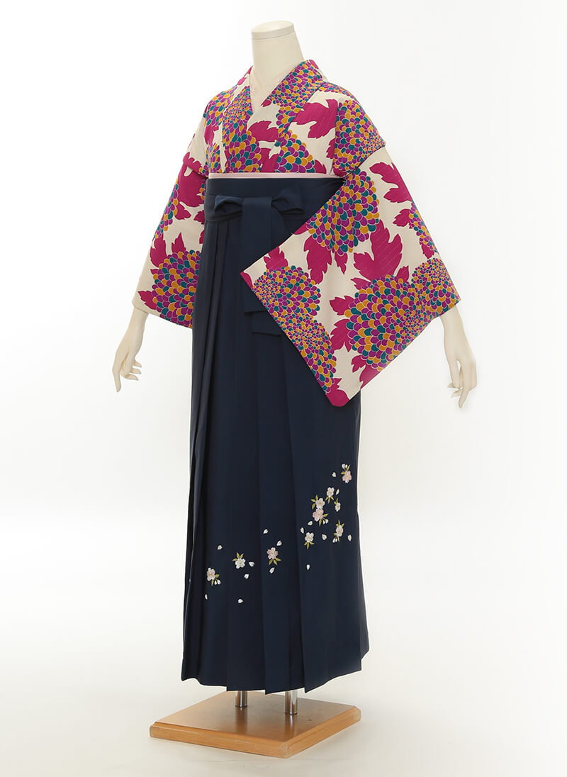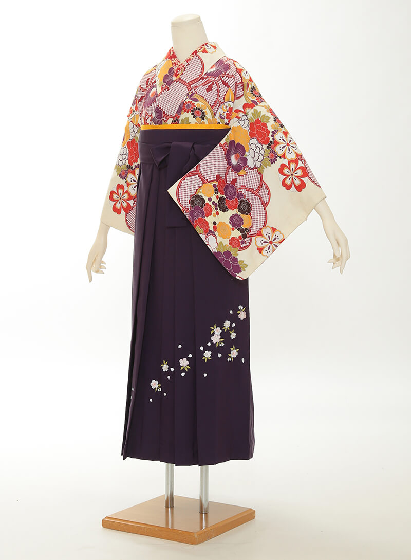 약600벌 중에서 마음에 드는 고몬 기모노를 고르신 뒤, 신장에 맞는 하카마 색상도 선택하실 수 있습니다.