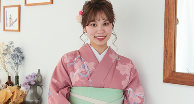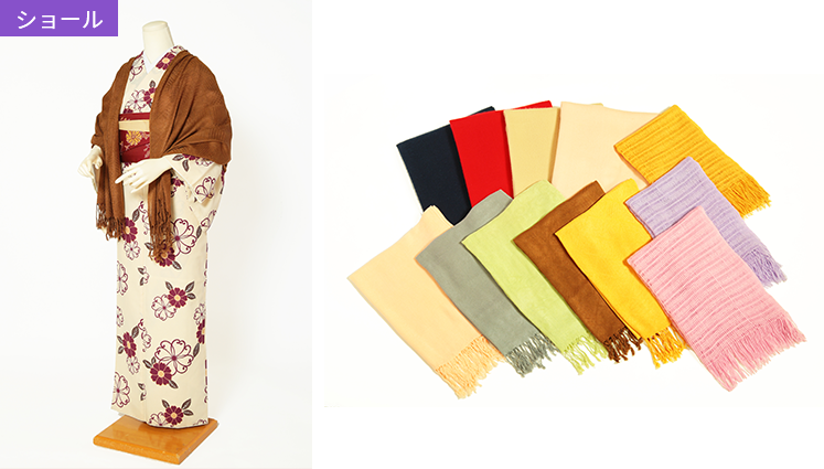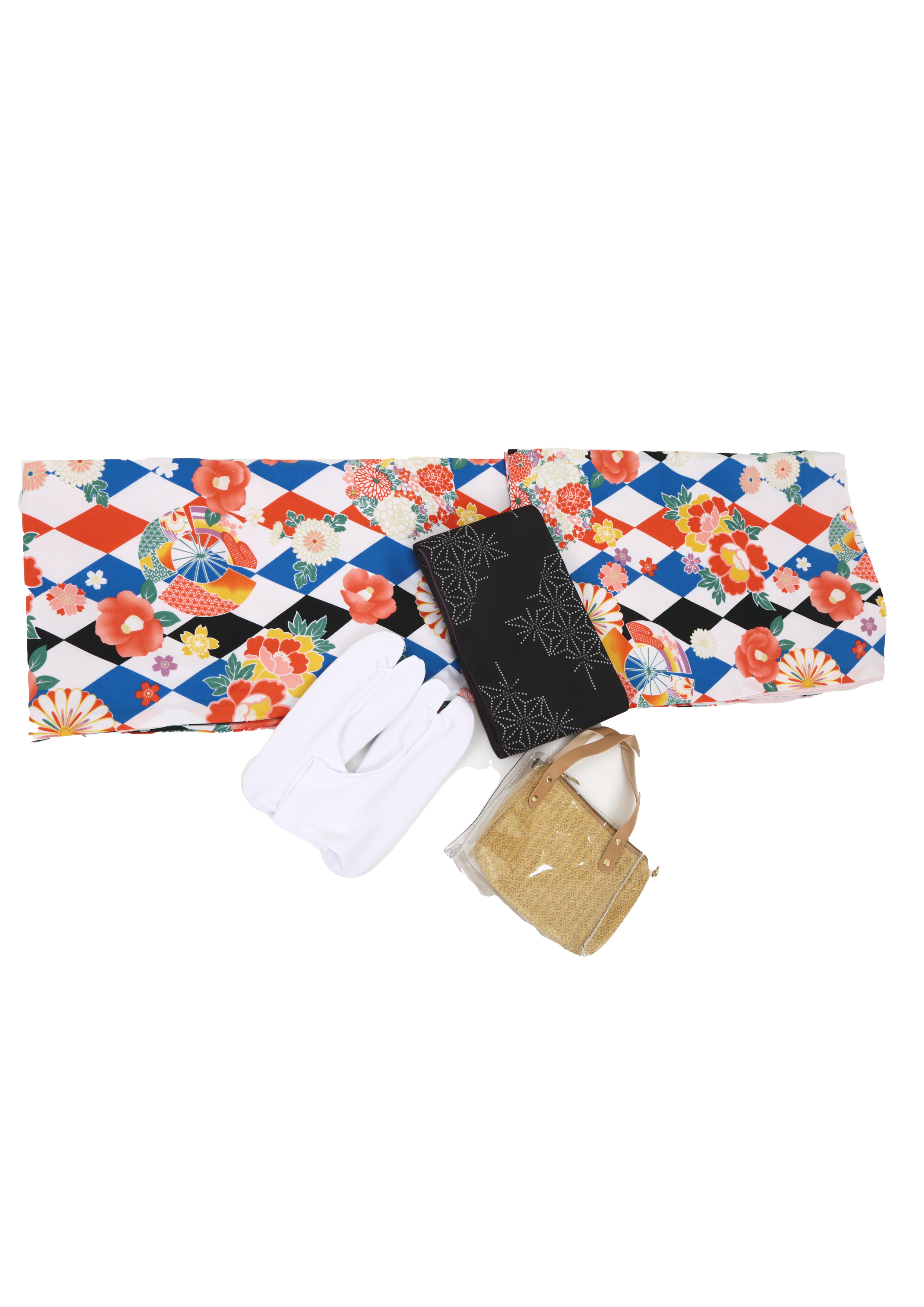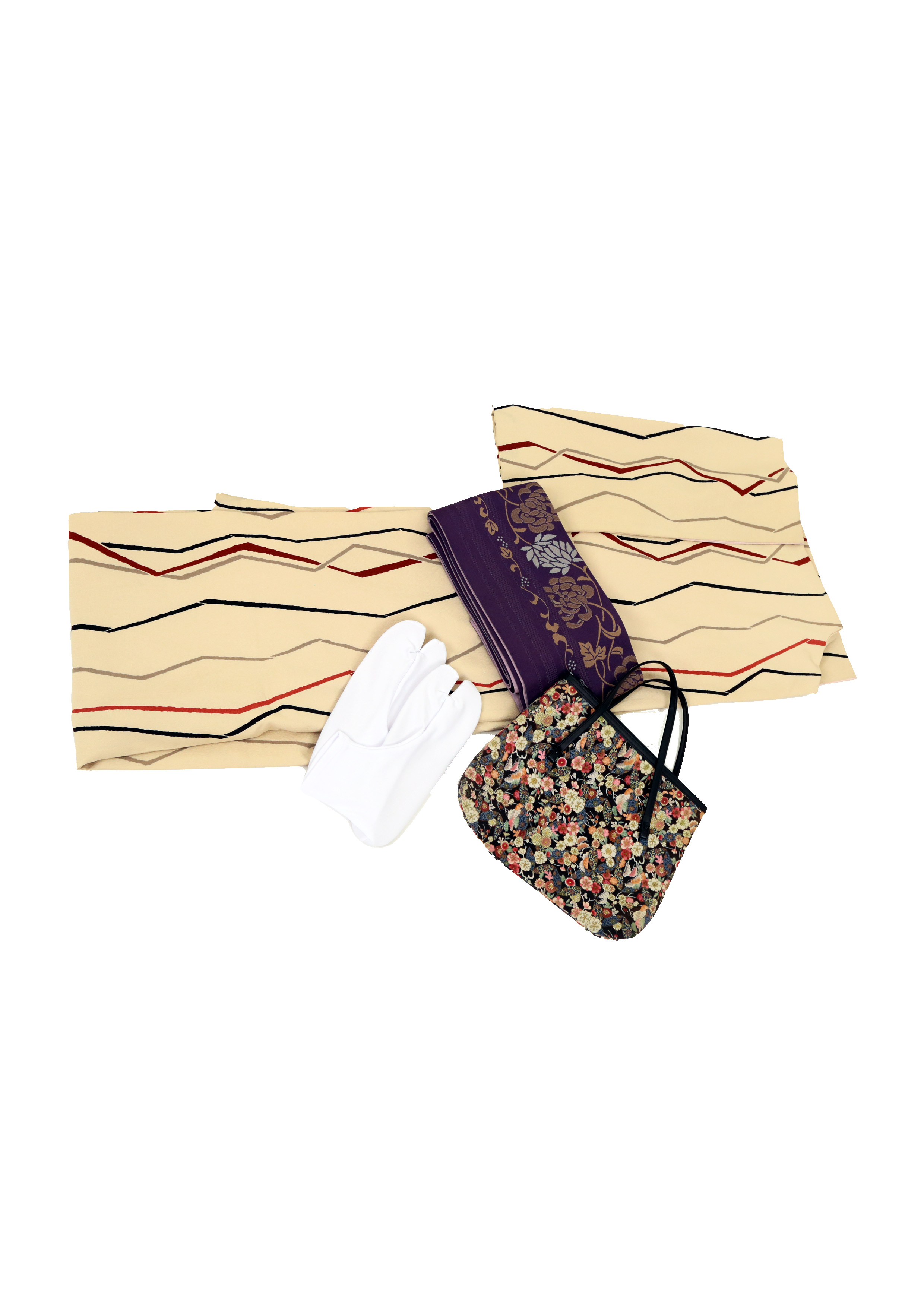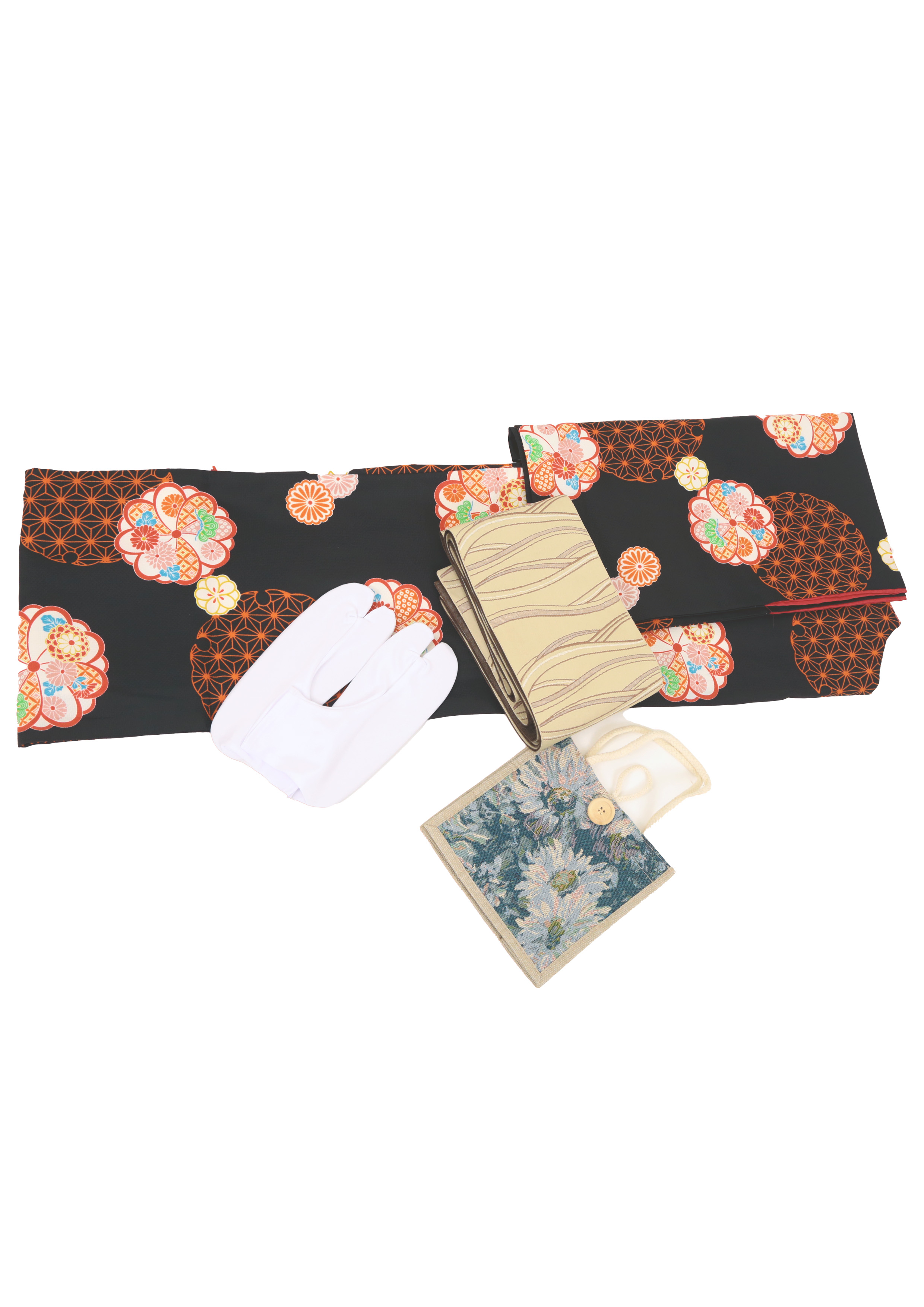 기모노, 오비(허리띠), 가방, 버선, 조리 신발이 한 세트로 구성된 플랜입니다.